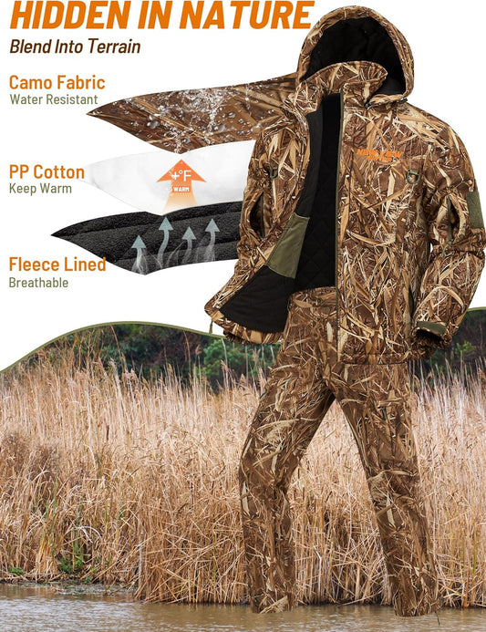 Insulated Hunting Clothes for Men Cold Weather, Warm Camo Hunting Jacket and Pants, Hunting Suit for Deer Duck Hunts